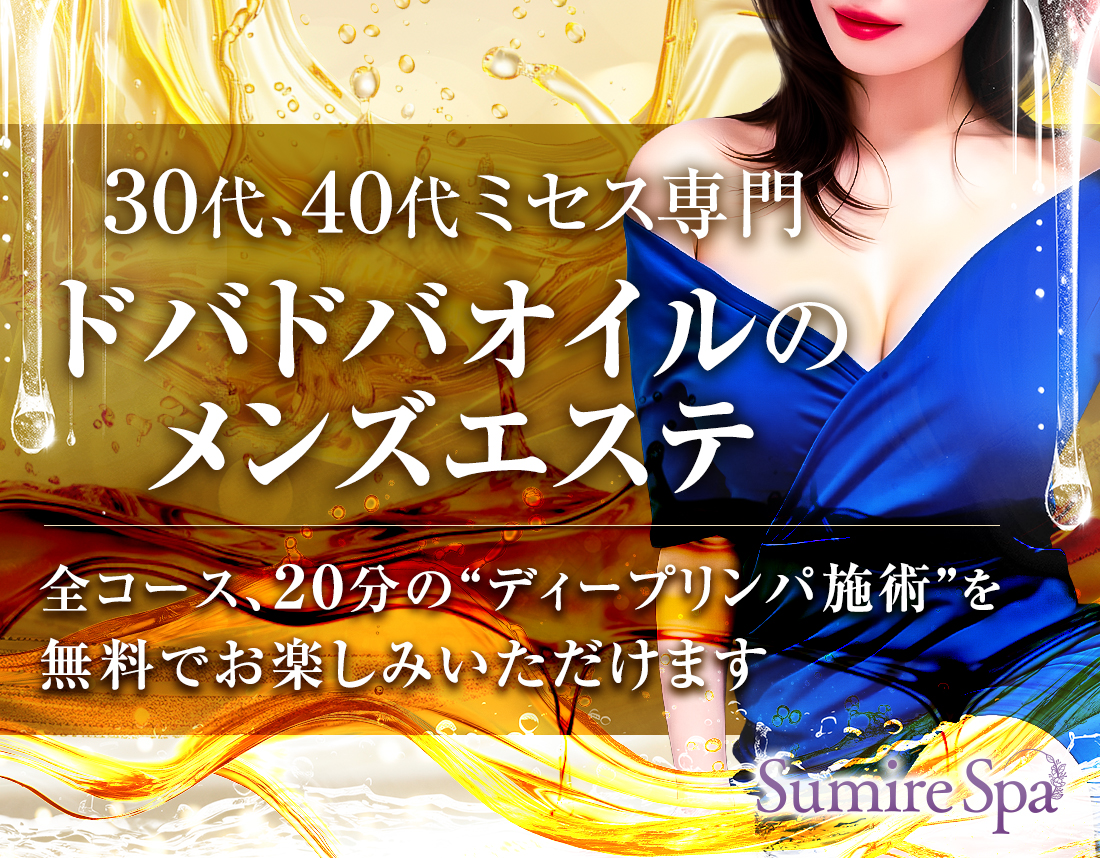 | 当店について | Sumire Spaで働くセラピストは、30歳~49歳のお姉さん、若妻、リアル人妻、美熟女など清楚な大人の女性、熟女が集まるミセス専門店です。『普段は男性との関りが少ないけど、実は男性を癒すことが大好き』そんな人妻さんのみを集めてみました 施術では大人の女性ならではの落ち着きや温かさ、若い女性では味わえない色気や母性など、経験豊富な女性がリードしますので安心して身をゆだねて頂けます 誰にも干渉されない二人だけのプライベート空間、セラピストの滑らかな手技と包容力に満ちた至福のマッサージ、大人だからこそ表現できる落ち着いた会話やドキドキ感まで、大人同士の上質な時間がお客様の疲れた心と身体を丁寧に癒やします。 当店ではセラピストはもちろんのこと店舗スタッフも一丸となってお客様の” 癒し ”に親身に向き合っております お客様の心と体に寄り添った心地の良いひと時、お気に入りのセラピストとの出会いなど、「エステで遊ぶならSumire Spaがいい」そんな愛されるお店を目指すべく、日々試行錯誤を重ね心を込めてお客様をお迎えしております 皆様にお会いできるのをセラピスト、スタッフ一同心より楽しみにしております |